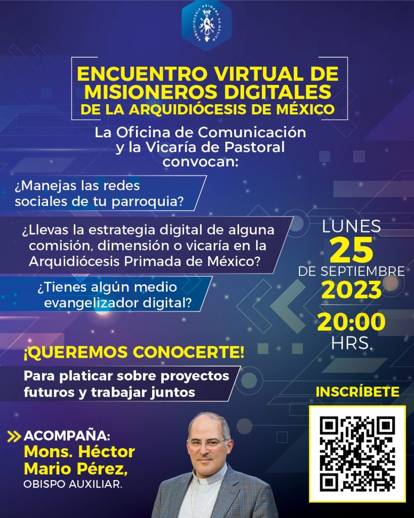 La Arquidiócesis Primada de México hace la invitación a equipos de comunicación parroquial o de vicaría para acompañarnos en este encuentro virtual de misioneros digitales de la Arquidiócesis de México.