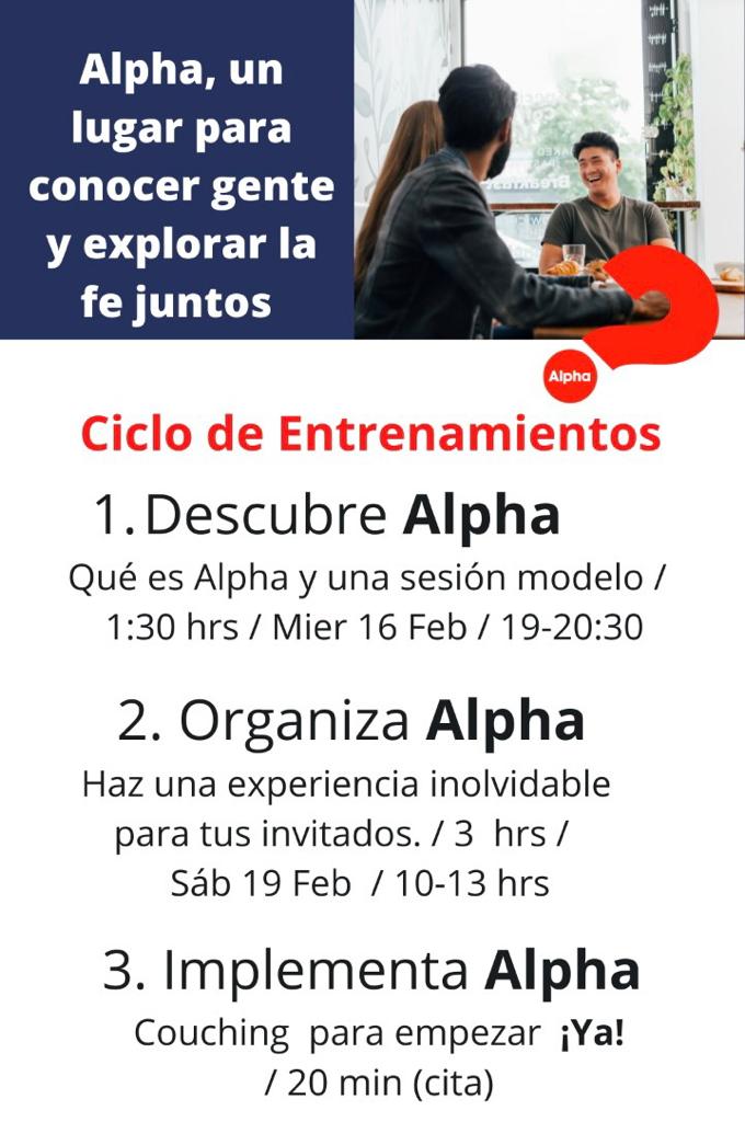 Te invitamos a participar en el ciclo de entrenamientos Alpha, un lugar para conocer gente y explorar la fe juntos.