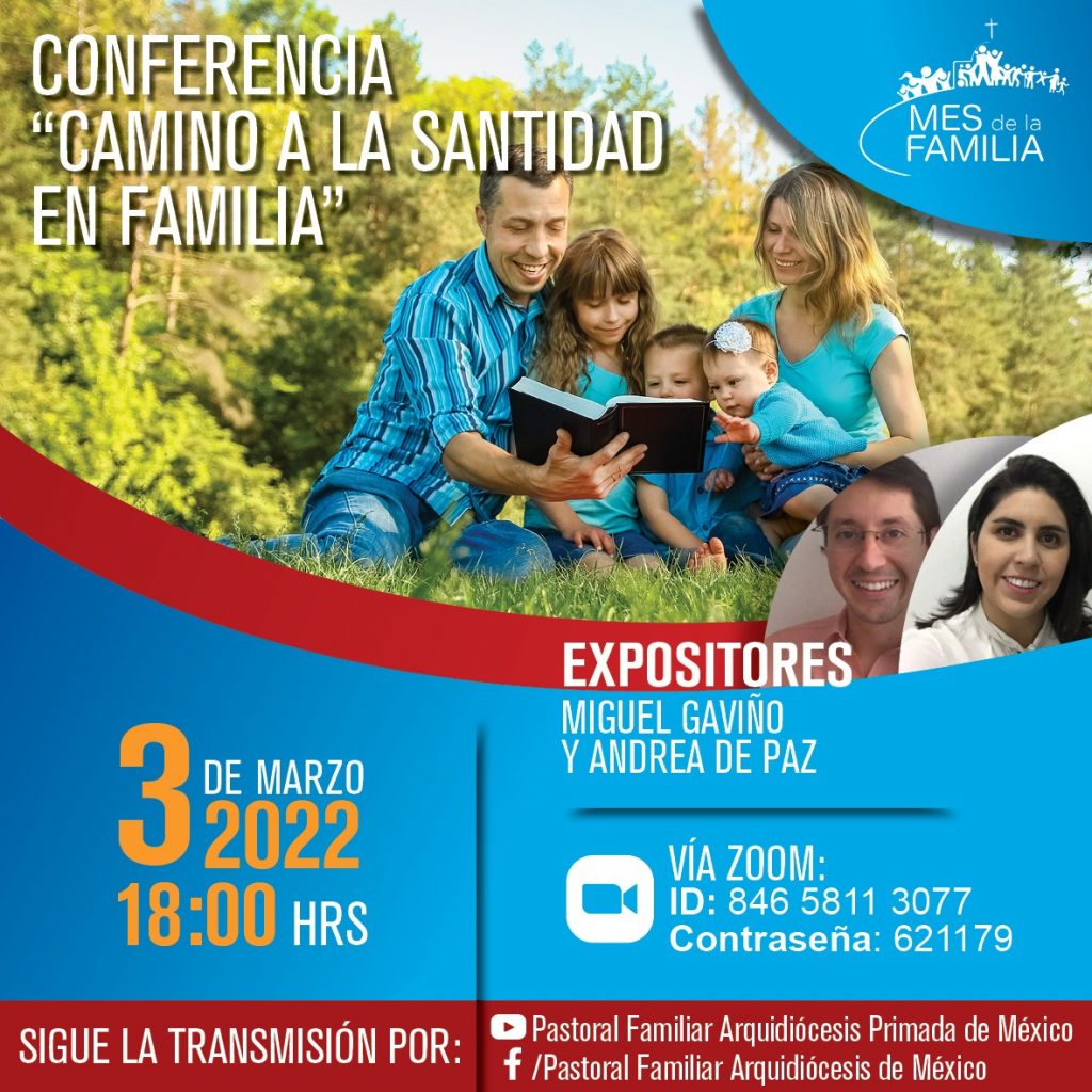 Te invitamos todo marzo a participar en el Mes de la familia, este día se llevará a cabo la conferencia denominada “Camino a la Santidad en Familia”.