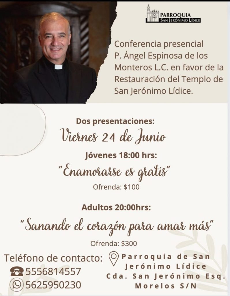 Te invitamos a participar en las 2 Conferencia presenciales del Pbro. Ángel Espinosa de los Monteros.