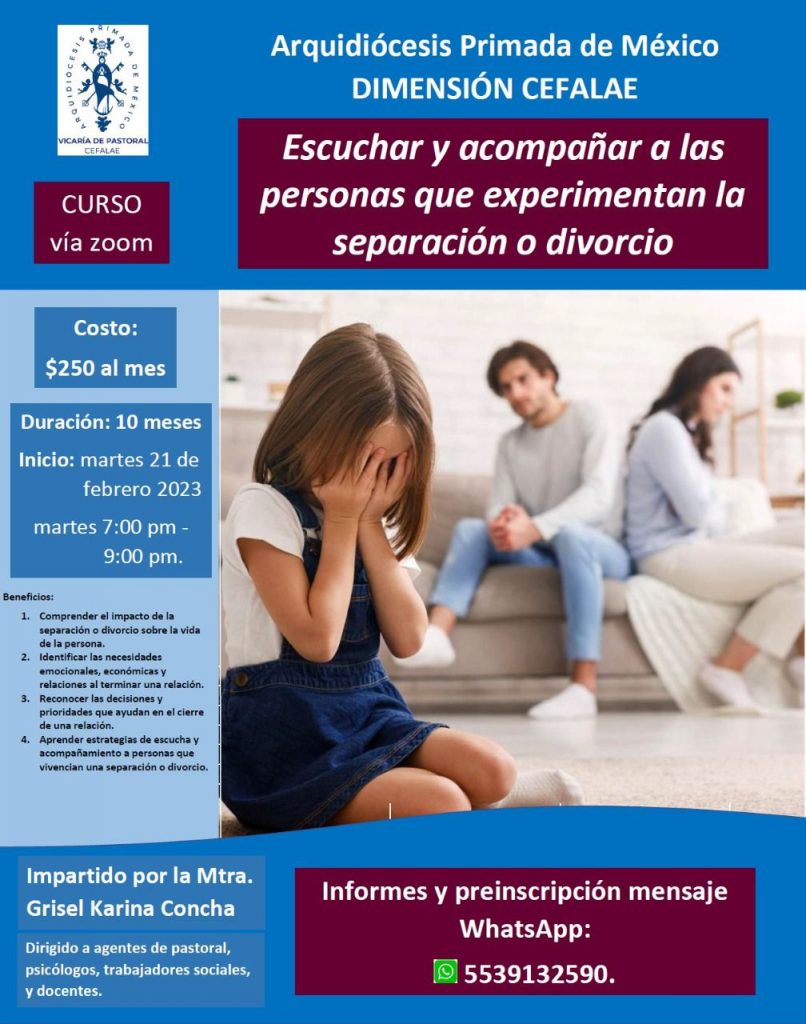 La Dimensión CEFALAE de la Arquidiócesis Primada de México te invita a participar en el curso “Escuchar y acompañar a las personas que experimentan una separación o divorcio”.
