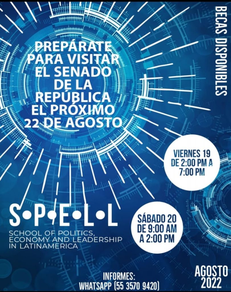 El II y IV decanato de la VI Zona Pastoral te invitan para visitar el Senado de la República el próximo 22 de agosto, es un curso de dos días que está organizando SPELL (School of Politics, Economy and Leadership in Latinamerica)