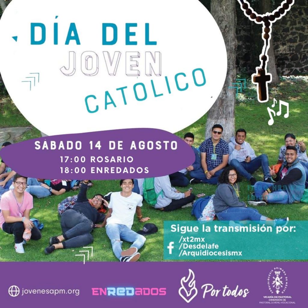 Derivado del semáforo epidemiológico de la CDMX y por seguridad de todos, nuestro encuentro presencial con motivo Día del Joven Católico SE POSPONE hasta nuevo aviso; sin embargo, no dejaremos pasar esta festejo que es importante, por lo que nos uniremos en oración, de manera virtual, en el Rosario Juvenil el día 14 de agosto a las 5:00 p.m. y terminando tendremos un programa especial de Enredados, organizado por los jóvenes de las 7 Zonas Pastorales, por lo que te invitamos a participar a través de nuestras redes sociales.