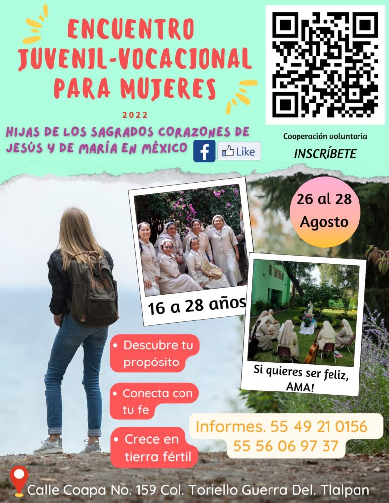 Las hijas de los sagrados corazones de Jesús y María en México te invita a participar en el encuentro juvenil-vocacional para mujeres, te ayudará a descubrir tu propósito, conectar con tu fe y crecer en tierra fértil.