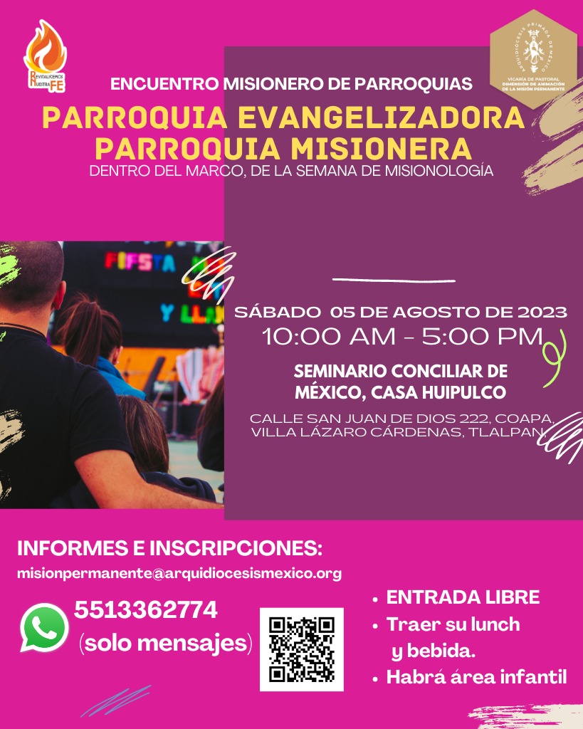 Misión Permanente de la Arquidiócesis Primada de México te invita a participar en el Encuentro Misionero de Parroquias dentro de la Semana de Misionología.