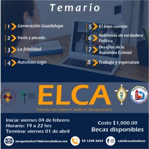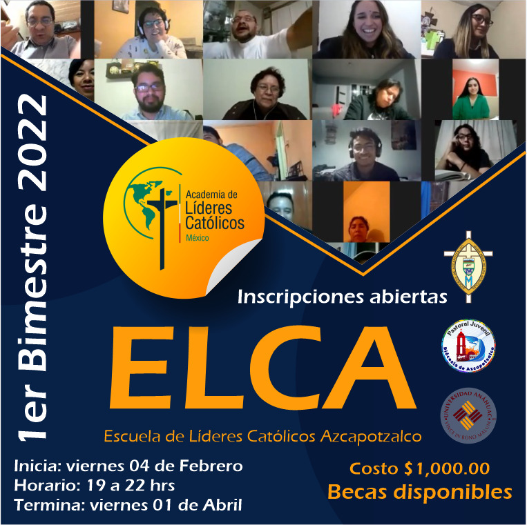 Te invitamos a participar en 1er. bimestre 2022 de la Escuela de Líderes Católicos de Azcapotzalco (ELCA).