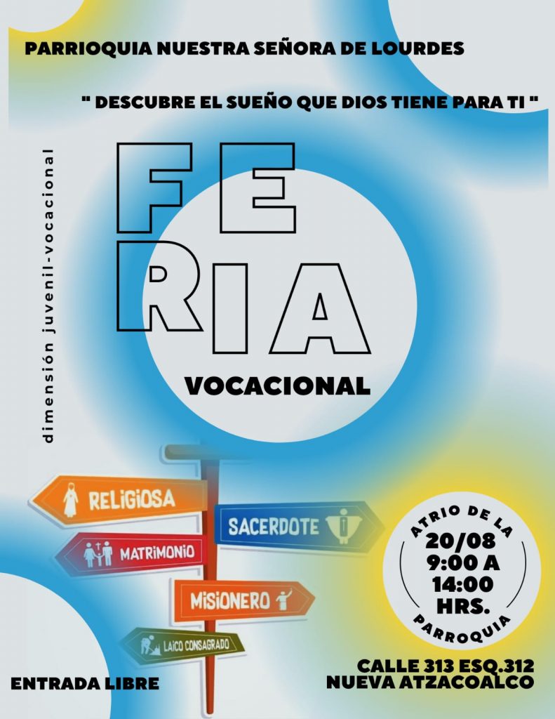 La Dimensión Juvenil-Vocacional de la Parroquia Nuestra Señora de Lourdes de la I Zona Pastoral te invita a participar en la Feria Vocacional.