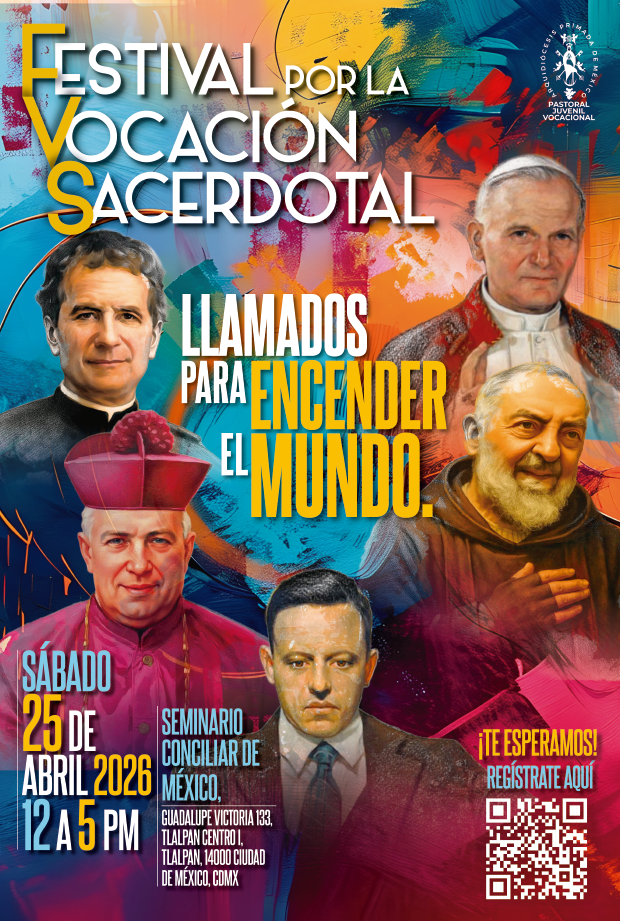 Este encuentro, que se llevará a cabo el próximo sábado 25 de abril de 12:00 a 17:00 hr., en Casa Tlalpan del Seminario Conciliar de México, en el marco del Domingo del Buen Pastor, representa una valiosa oportunidad para acercar a nuestros jóvenes y a sus familias al misterio y la belleza de la vocación sacerdotal y de la vida consagrada, a través del testimonio vivo, alegre y cercano de quienes hemos sido llamados por el Señor.