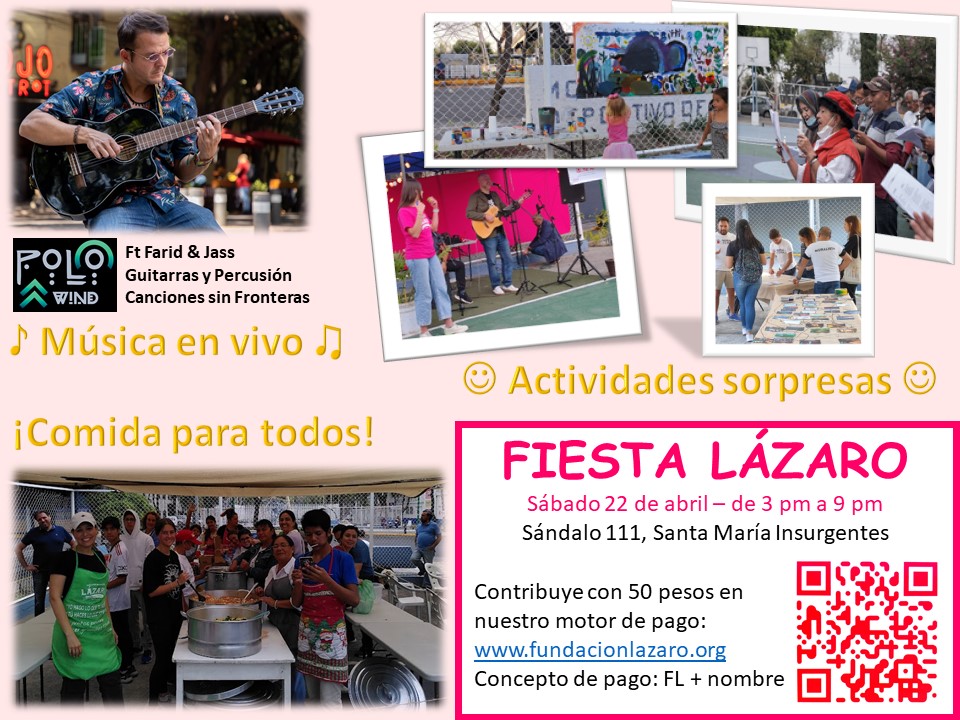 La Fundación Lázaro te invita a participar en la Fiesta Lázaro en la cual habrá música en vivo, comida para todos, actividades sorpresas y más.
