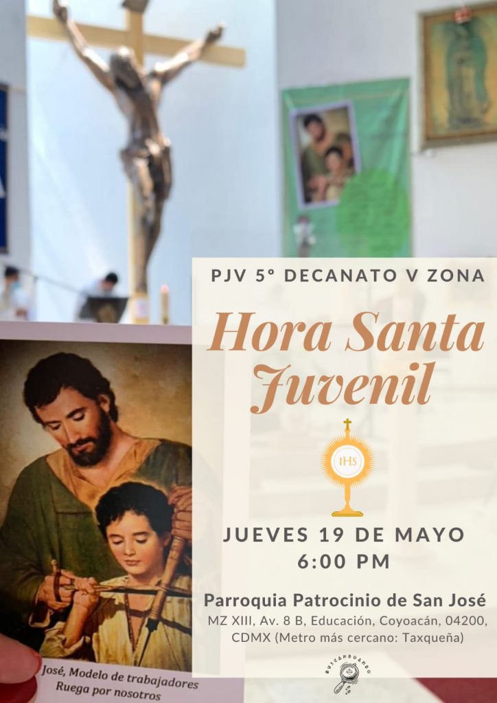 La Pastoral Juvenil Vocacional del 5to. decanato de la V Zona Pastoral te invita a participar en la Hora Santa Juvenil.