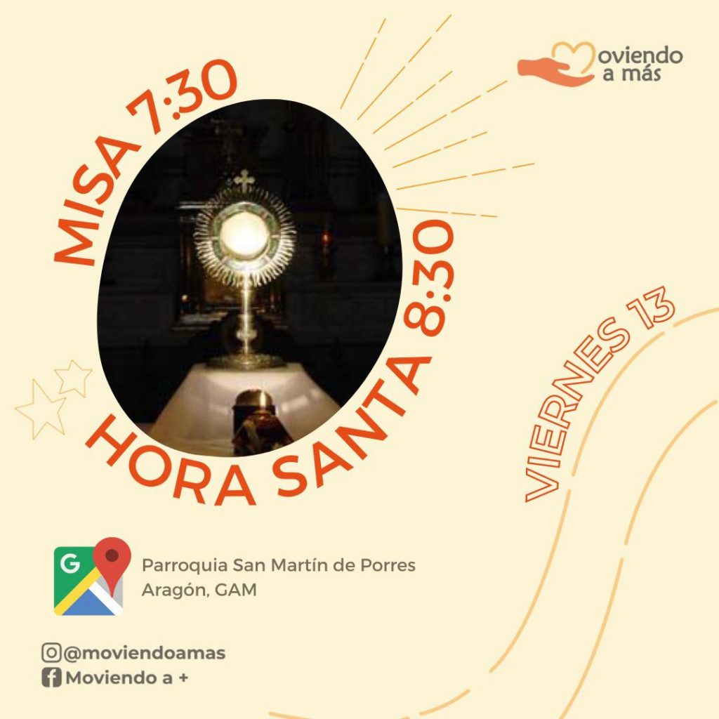 - Horario: Misa 7:30 p.m. y Hora Santa 8:30 p.m.