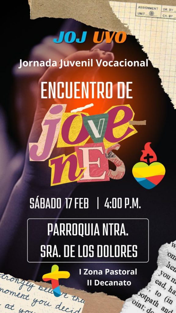 Te esperamos a partir de las 4 p.m. en la Parroquia de Nuestra Señora de los Dolores en C. León Guzmán 55, Gustavo A. Madero para un encuentro con jóvenes como tú.