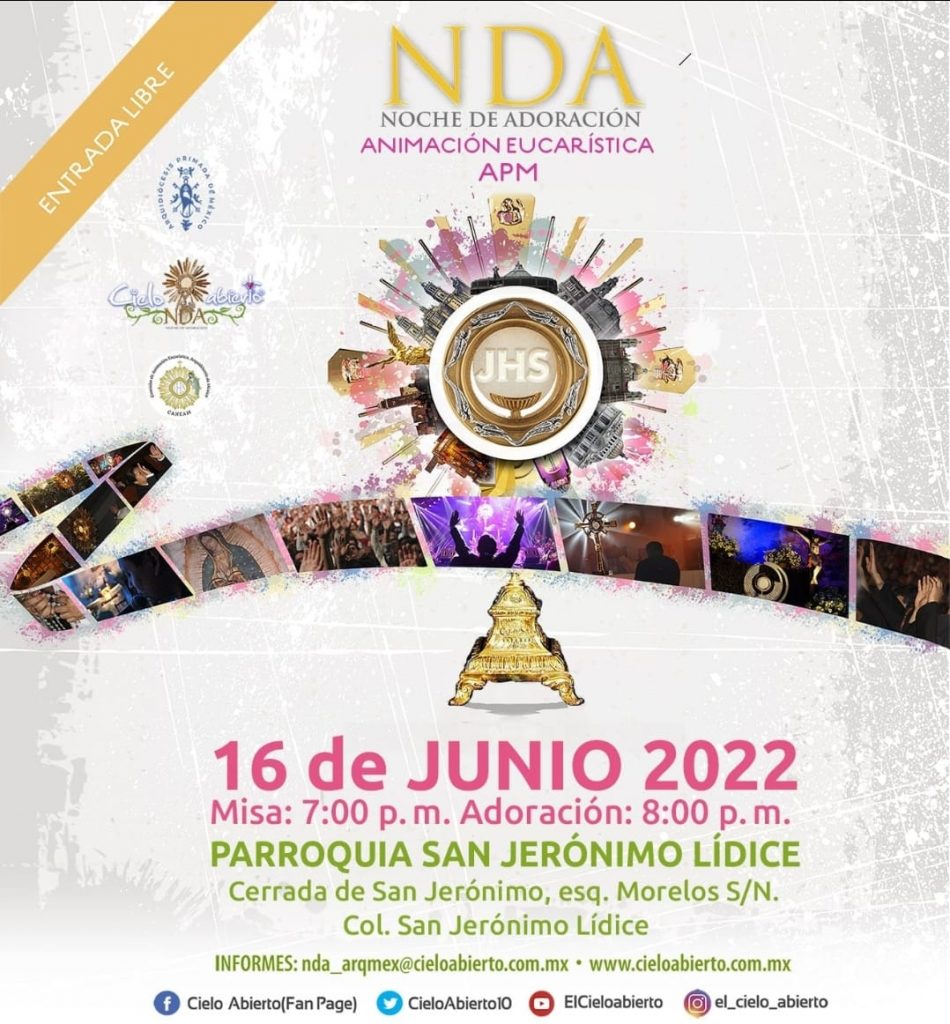La Parroquia de San Jerónimo Lídice de la VI Zona Pastoral, te invita a participar en la noche de adoración al Santísimo Sacramento.