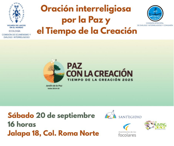 • Junto con la Comisión de Ecología Integral le reiteramos la invitación a la Oración Interreligiosa por la Paz y el Tiempo de la Creación del sábado 20 de septiembre.
