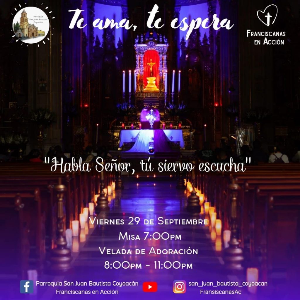 Las Franciscanas en Acción de la Parroquia San Juan Bautista te invita a participar en una velada de adoración juvenil.