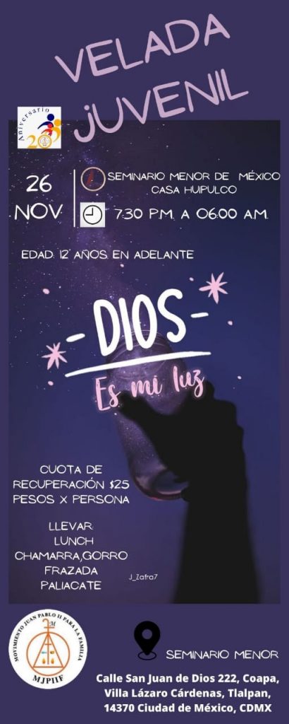 El Movimiento Juan Pablo II para la Familia te invita a participar en la Velada Juvenil.