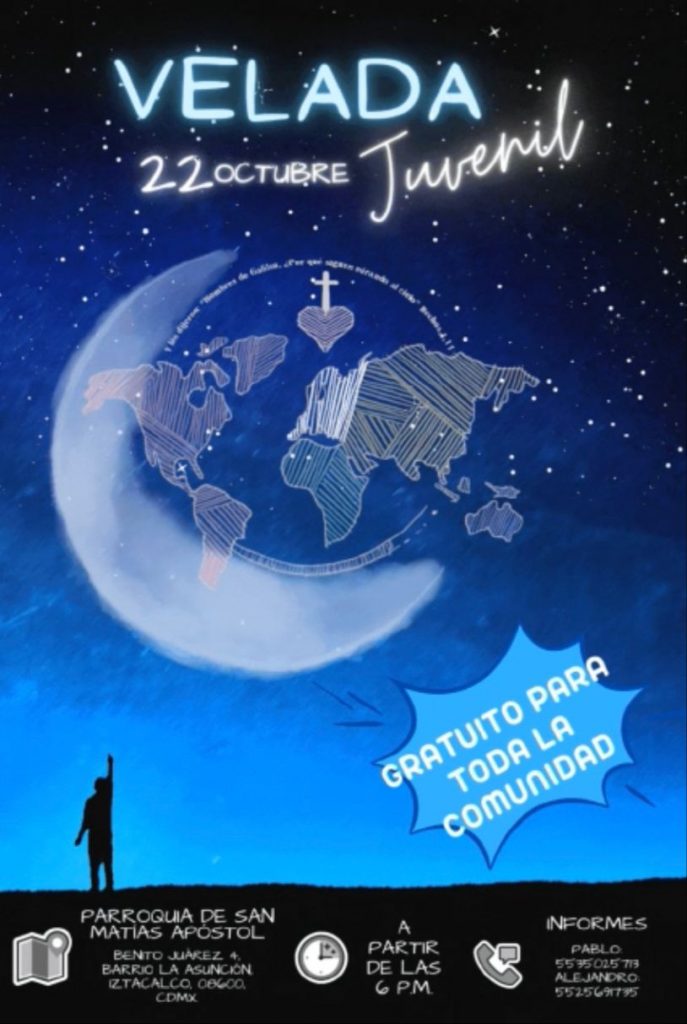La Parroquia de San Matías Apóstol te invita a una velada juvenil el sábado 22 de octubre, a partir de las 6:00 p.m.